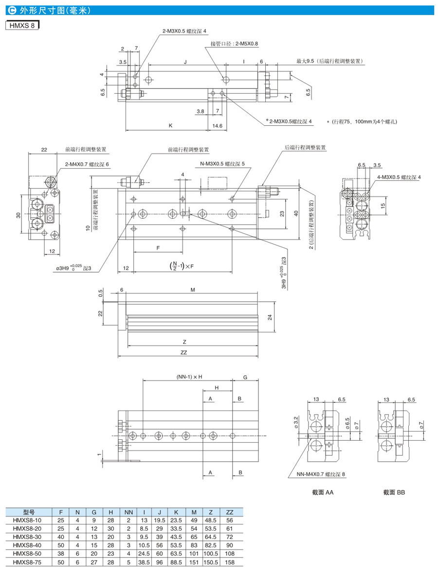 HMXS系列氣動(dòng)滑臺(tái)(雙缸型)