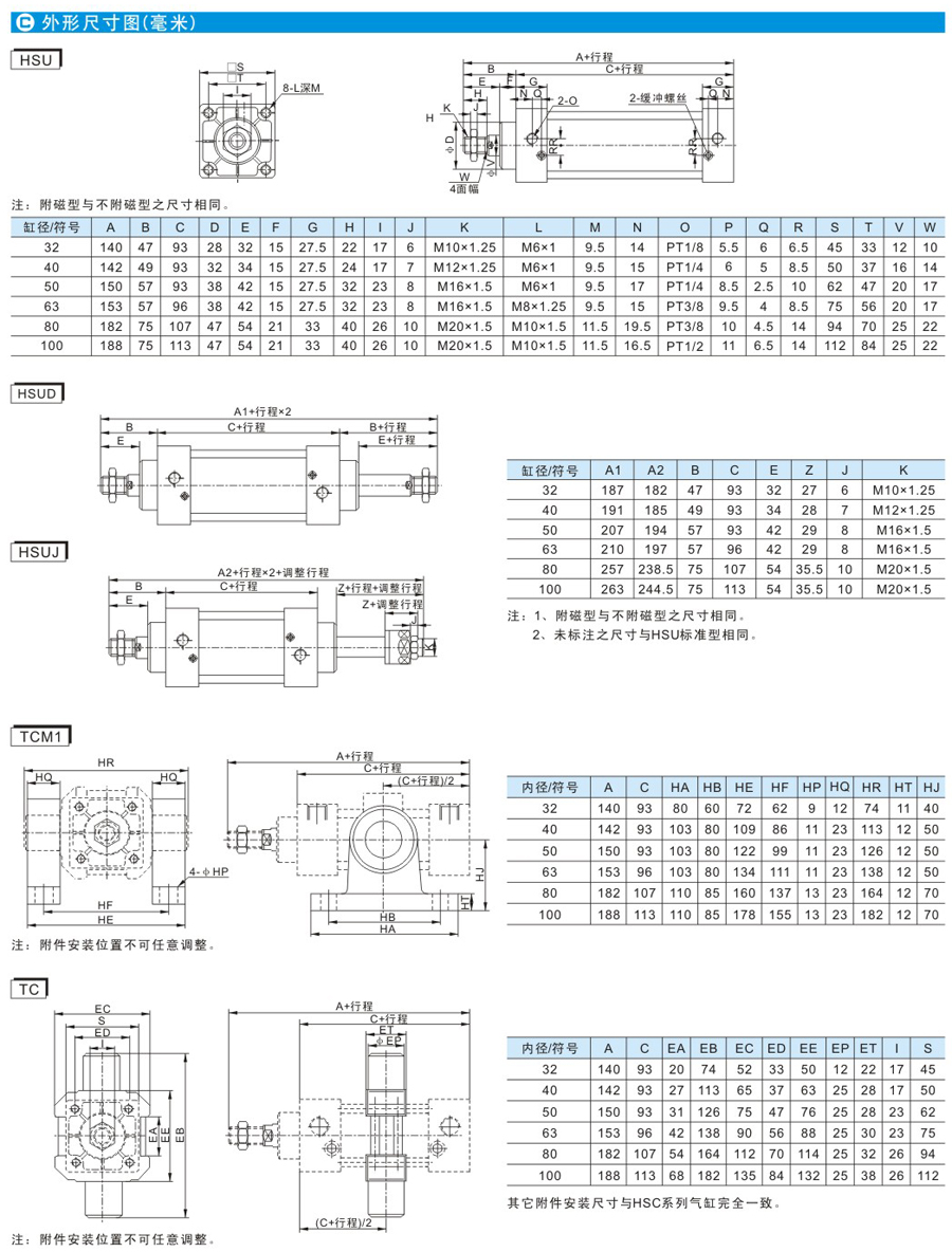 HSU系列標(biāo)準(zhǔn)氣缸(無拉桿式)
